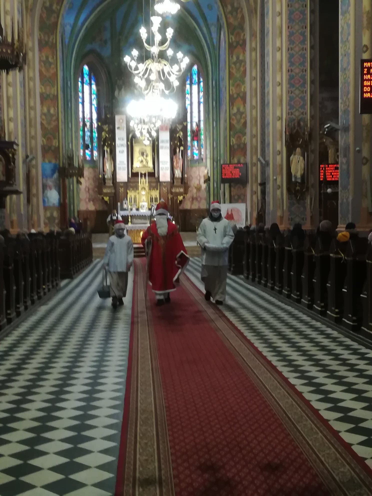 Dziś w naszej wspólnocie parafialnej przez cały dzień, na każdej Mszy Świętej gościliśmy szczególnego Gościa – Świętego Mikołaja. Zawsze przychodził tylko do dzieci, a w tym roku przyszedł do wszystkich. Każdy, kto był dziś obecny na Mszy Świętej, otrzymał od Św. Mikołaja maseczkę na czas trwającej pandemii, oraz cukierek – Bożą Krówkę, aby wzmocnić swoje ciało i duszę. Dziękujemy Mikołajowi za dzisiejszą obecność i zapraszamy za rok!