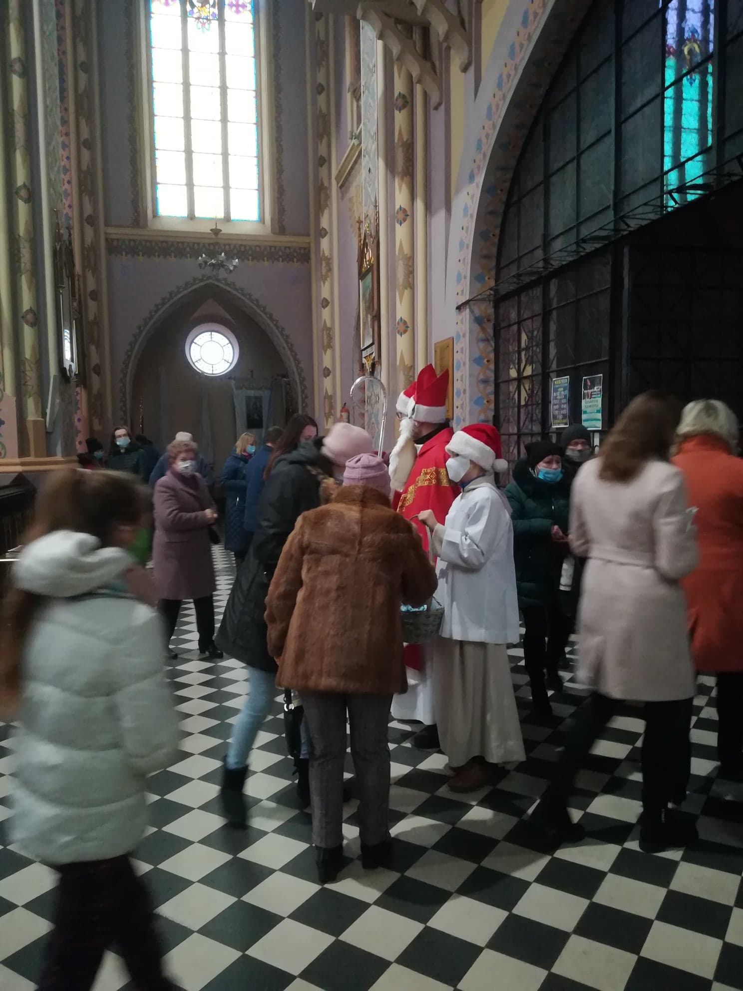 Dziś w naszej wspólnocie parafialnej przez cały dzień, na każdej Mszy Świętej gościliśmy szczególnego Gościa – Świętego Mikołaja. Zawsze przychodził tylko do dzieci, a w tym roku przyszedł do wszystkich. Każdy, kto był dziś obecny na Mszy Świętej, otrzymał od Św. Mikołaja maseczkę na czas trwającej pandemii, oraz cukierek – Bożą Krówkę, aby wzmocnić swoje ciało i duszę. Dziękujemy Mikołajowi za dzisiejszą obecność i zapraszamy za rok!